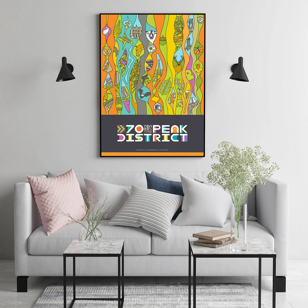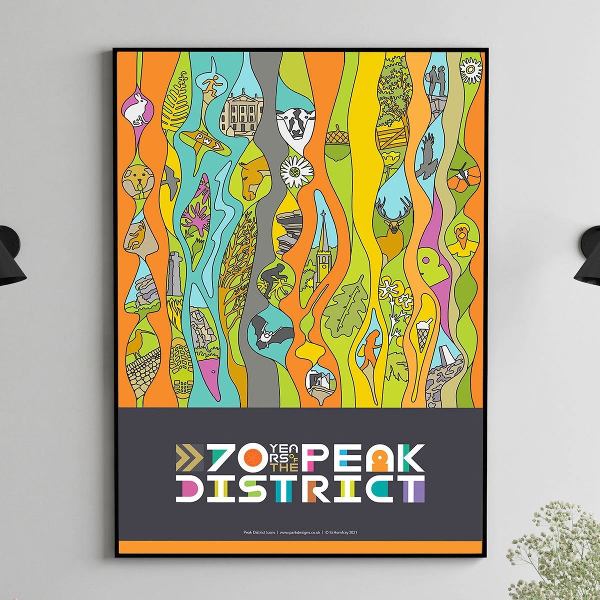 This work is the logo motif, a celebration, of 70 years of the Peak District. Created by Si this April to celebrate the Park and to help raise funds for the Peak District National Park Foundation.