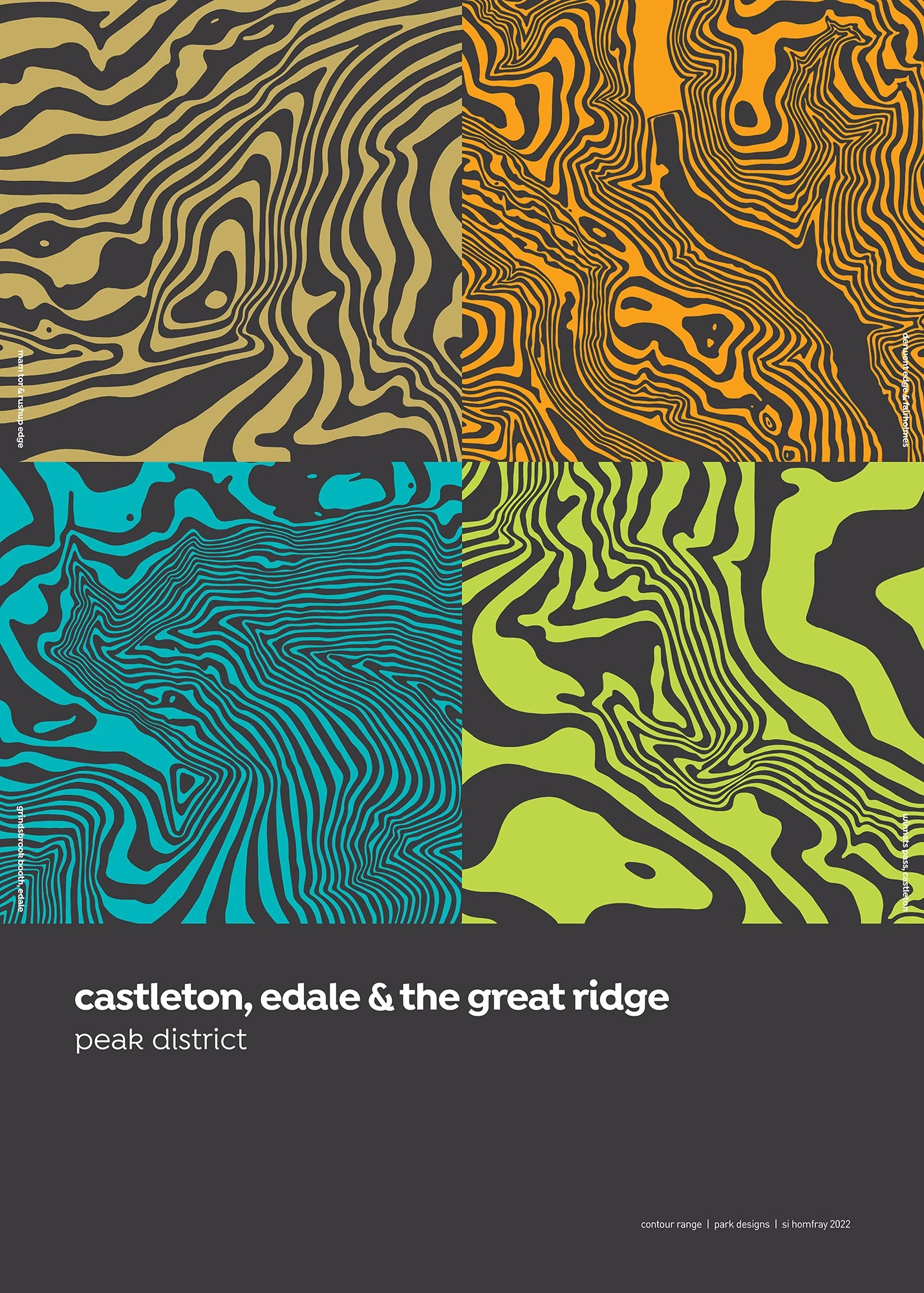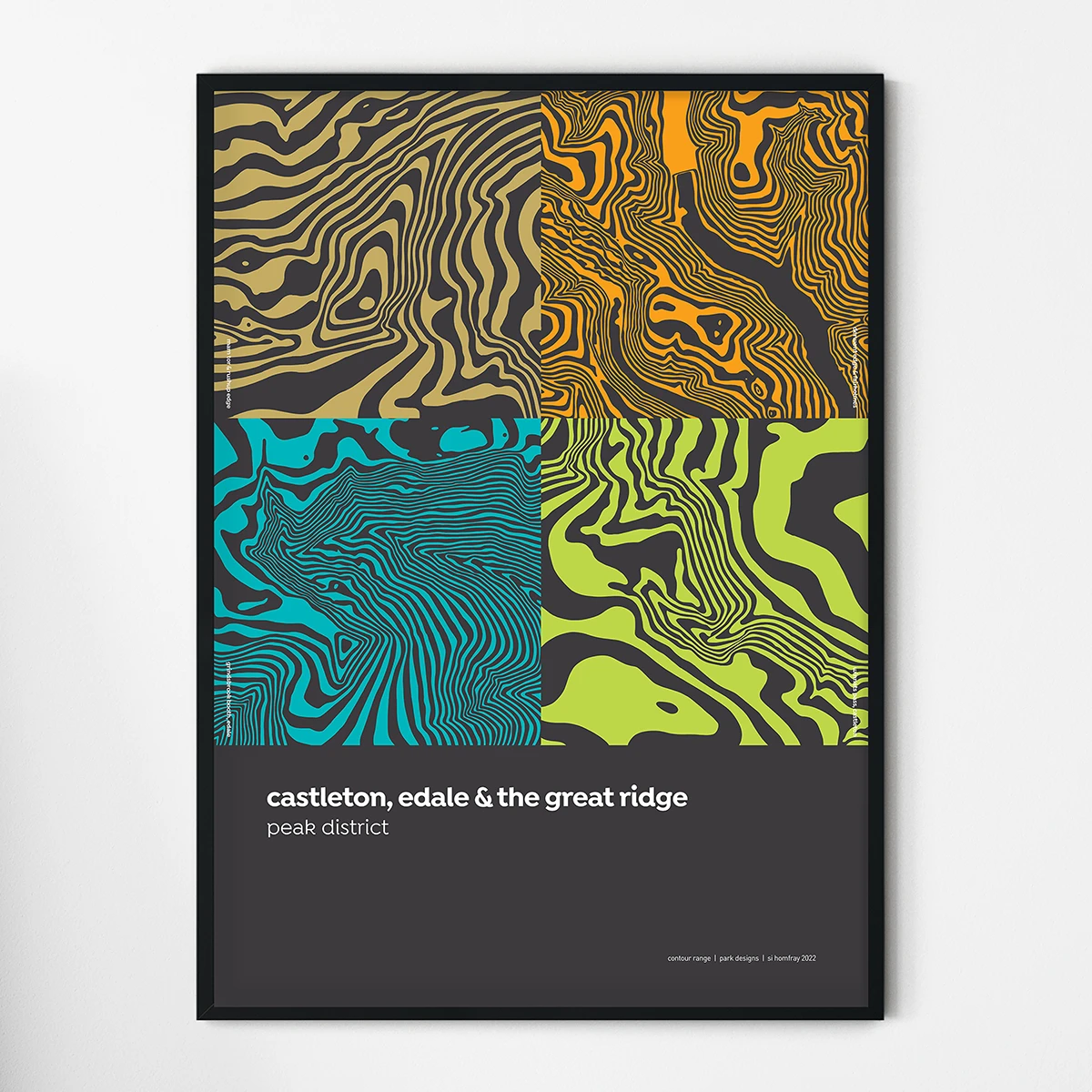 Title: Castleton, Edale & The Great Ridge on Dark Grey- Peak District Contour Print