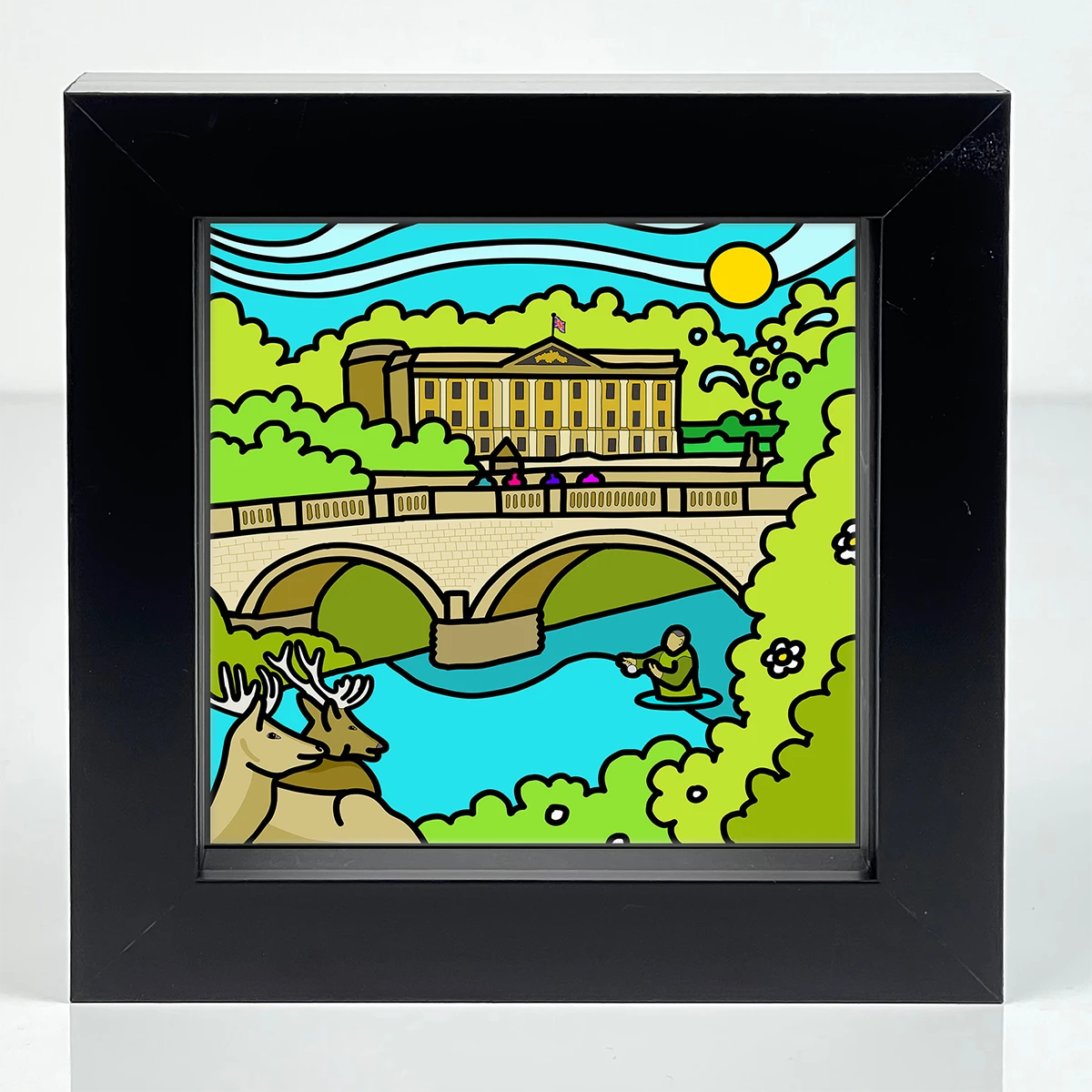 Supplied: Framed in chunky glass fronted black box frames