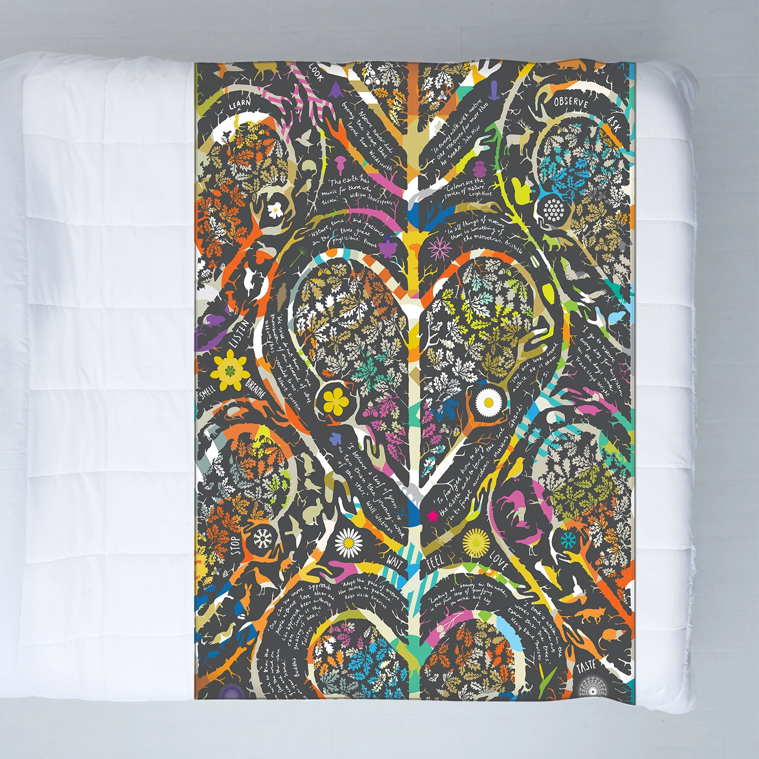 This work was created to show the colour and connectedness of all of nature. The tree is central, branching out to other areas through the wildlife and the flowers. The drawing draws on the flowers and animals found wild around the Peak District National Park.