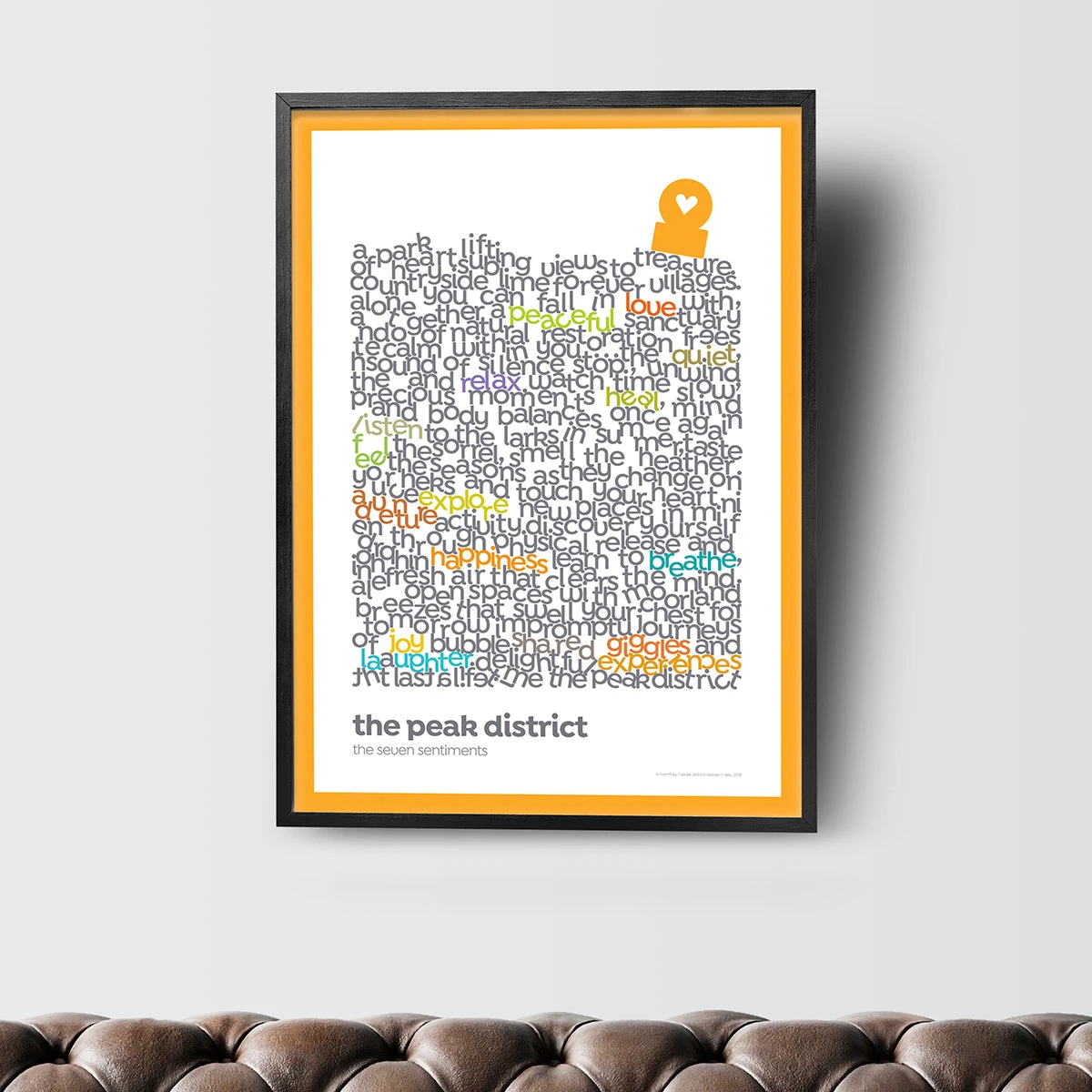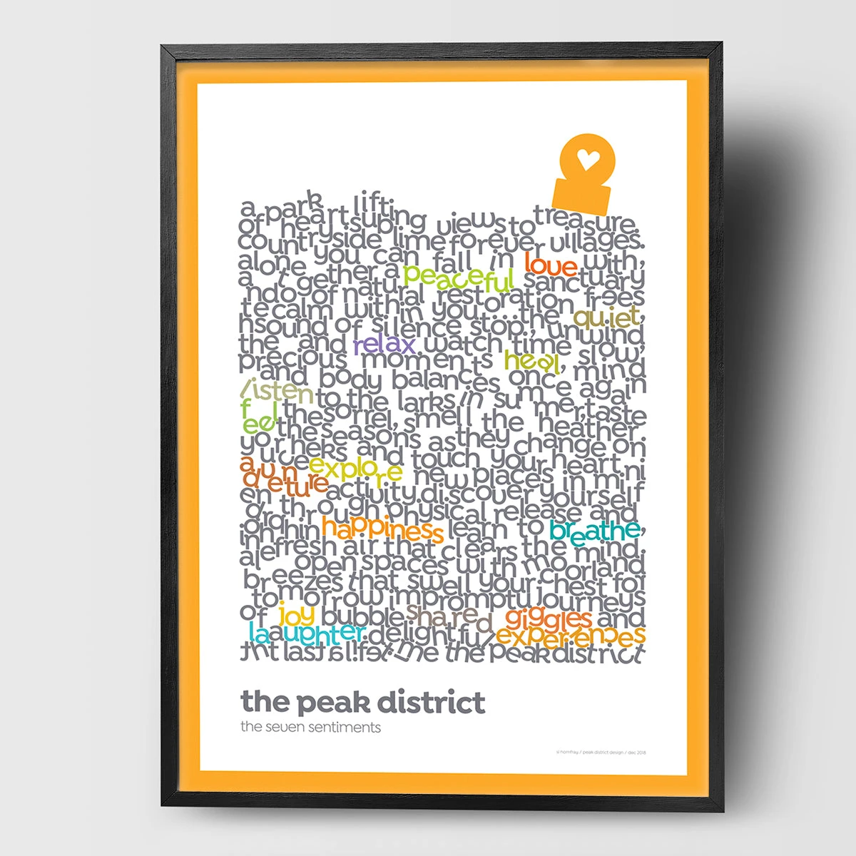 This work was slowly built up of the individual letters from the Seven Sentiments, words that describe the core feelings and experiences of spending time in this country’s great open spaces. In this instance, Si Homfray wrote the words as a personal hommage to the Peak District National Park.