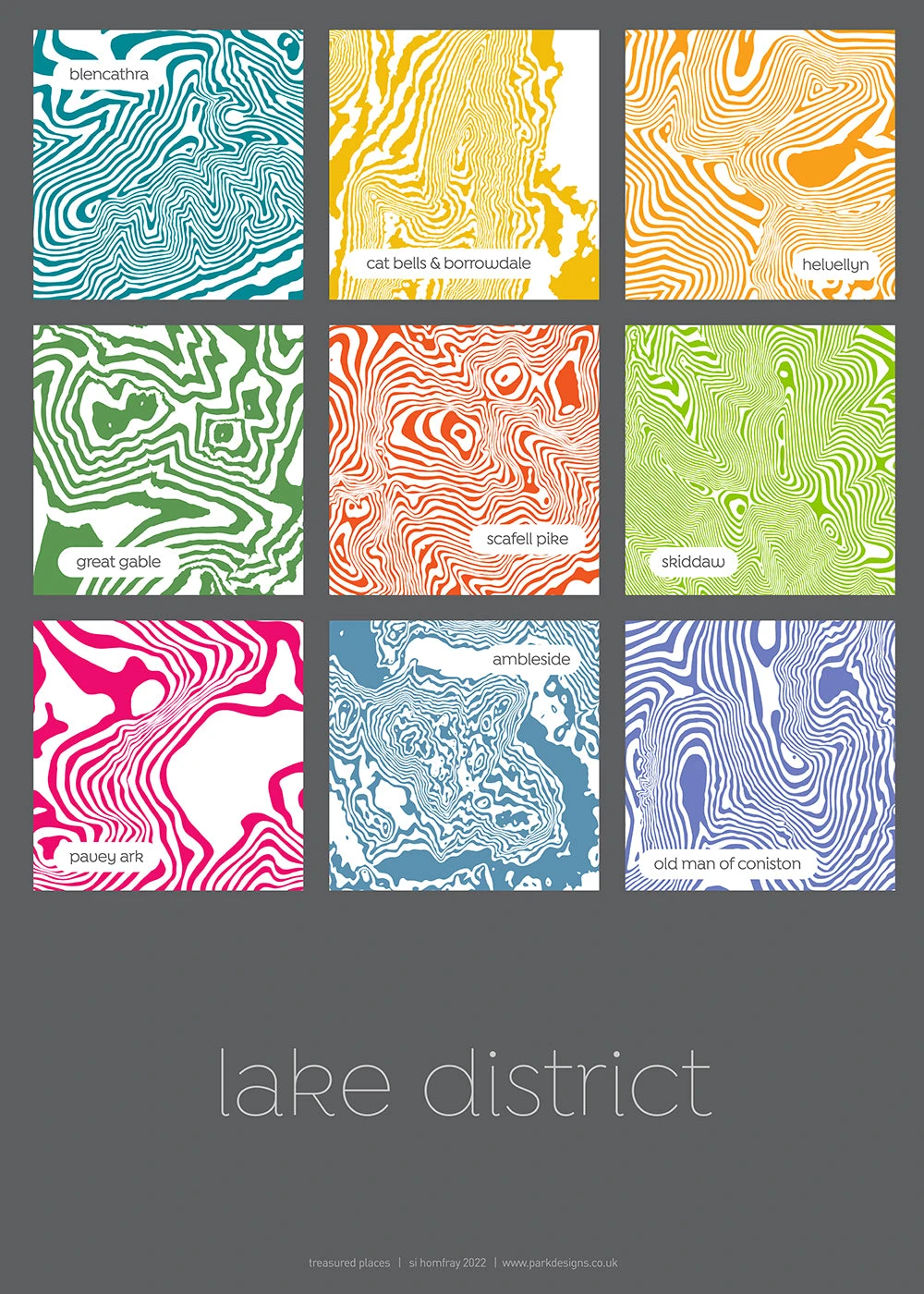 Title: Nine Treasured Places, Lake District, Contour Print