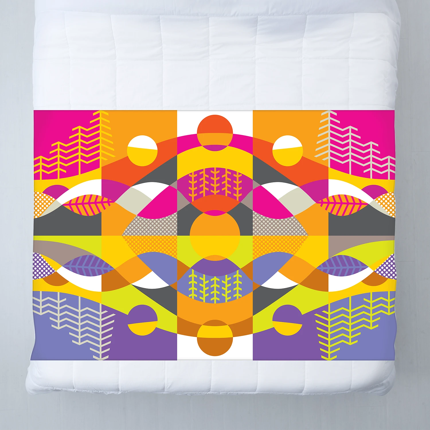 The fall and rise of the Lakeland sun is the companion piece to the Rise and Fall of the Lakeland Sun, the original Lake District design. It offers a sunset to the original sunrise. This abstracted work, is a contemporary pattern design, created from a love, and experiences, of the widely varied Lake District landscapes.