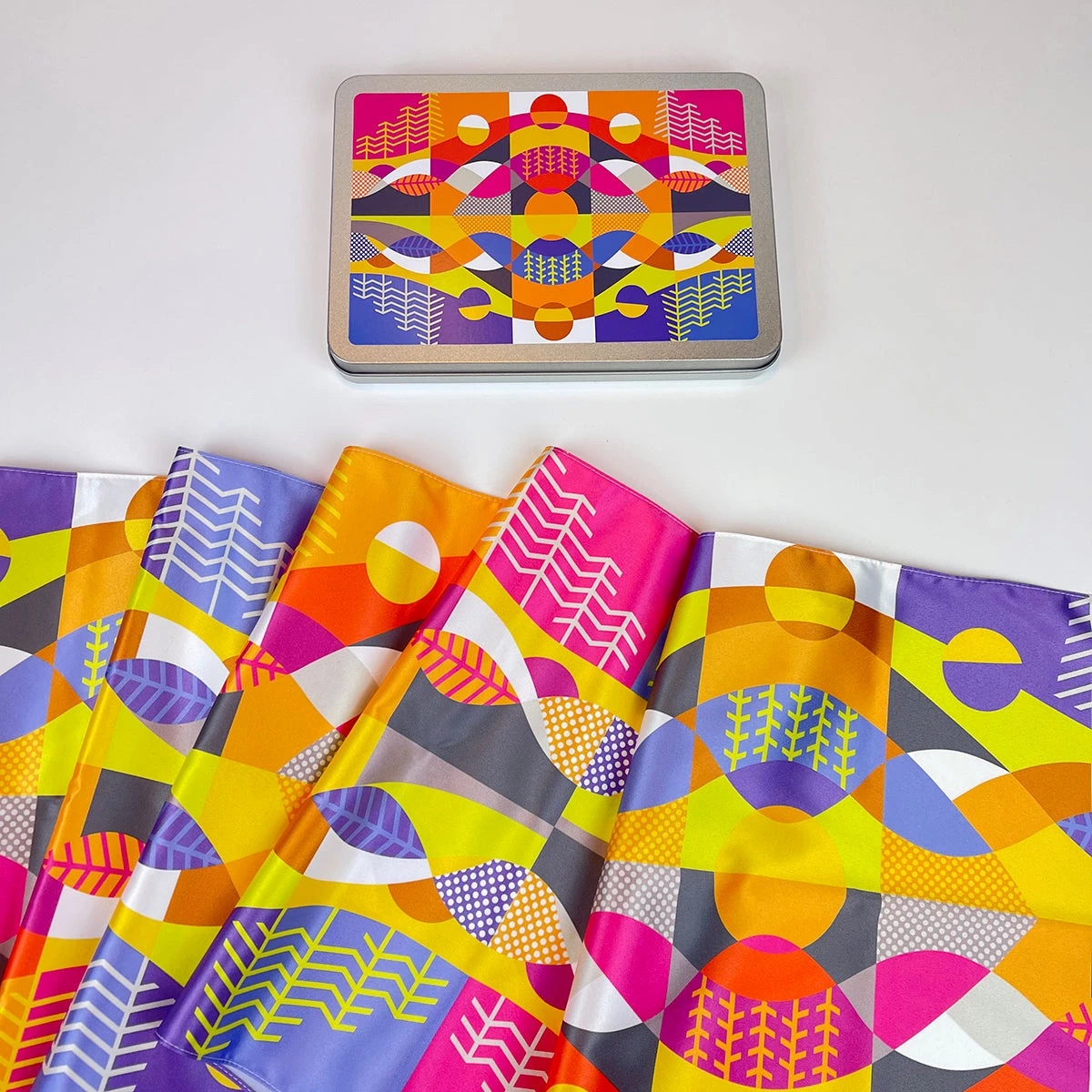 Supplied: In a customised hand made tin featuring the scarf design