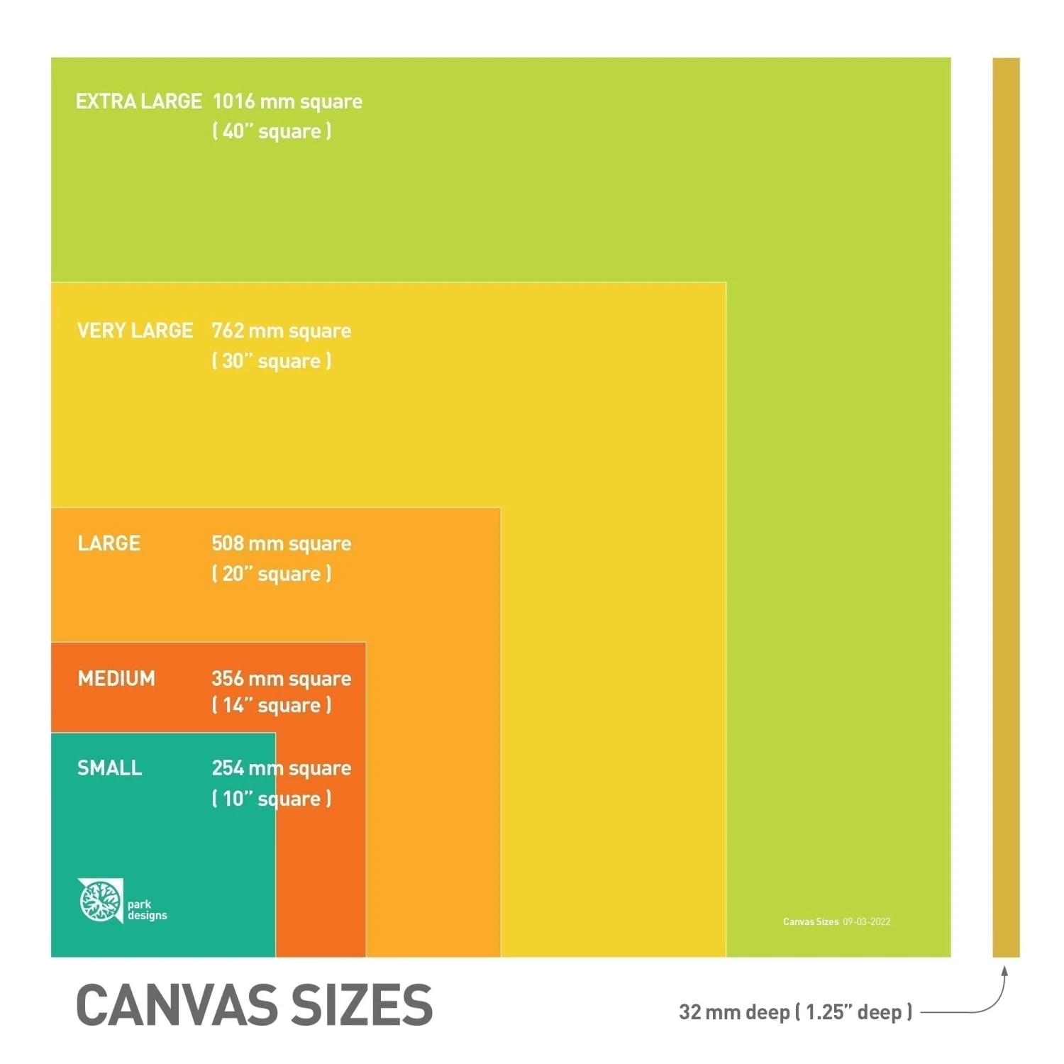 All of our canvases are handmade in the UK, using the latest printing technology that’s then applied to a premium canvas and stretched onto a sustainably-sourced solid wood frame. They’re available in four different sizes: