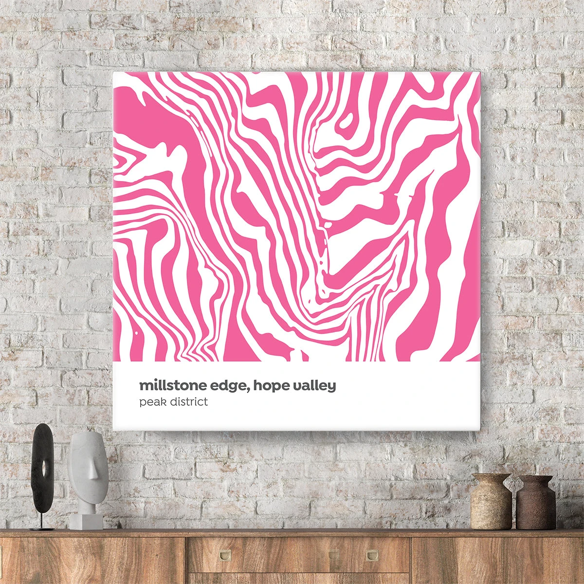 This particular design reflects the topography of Millstone Edge in the Hope Valley in the Peak District in a fuscia pink.