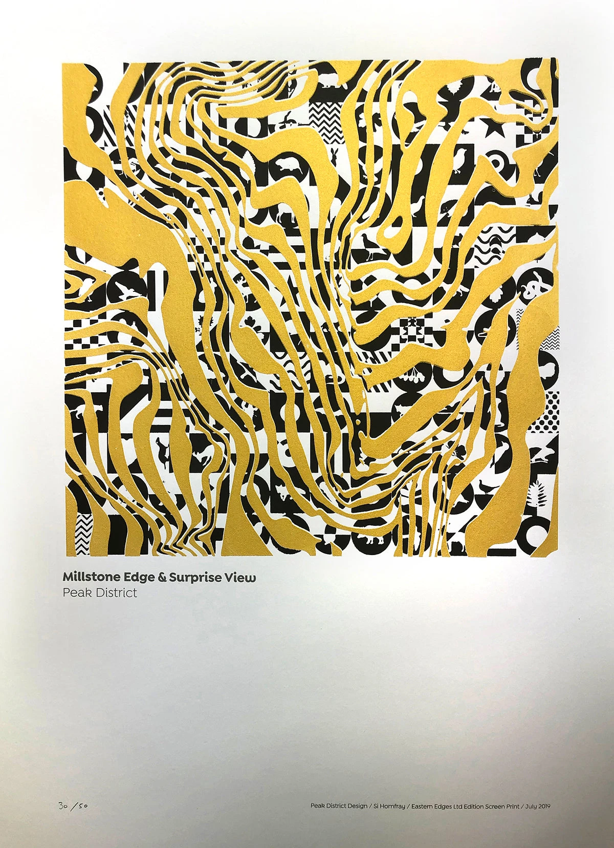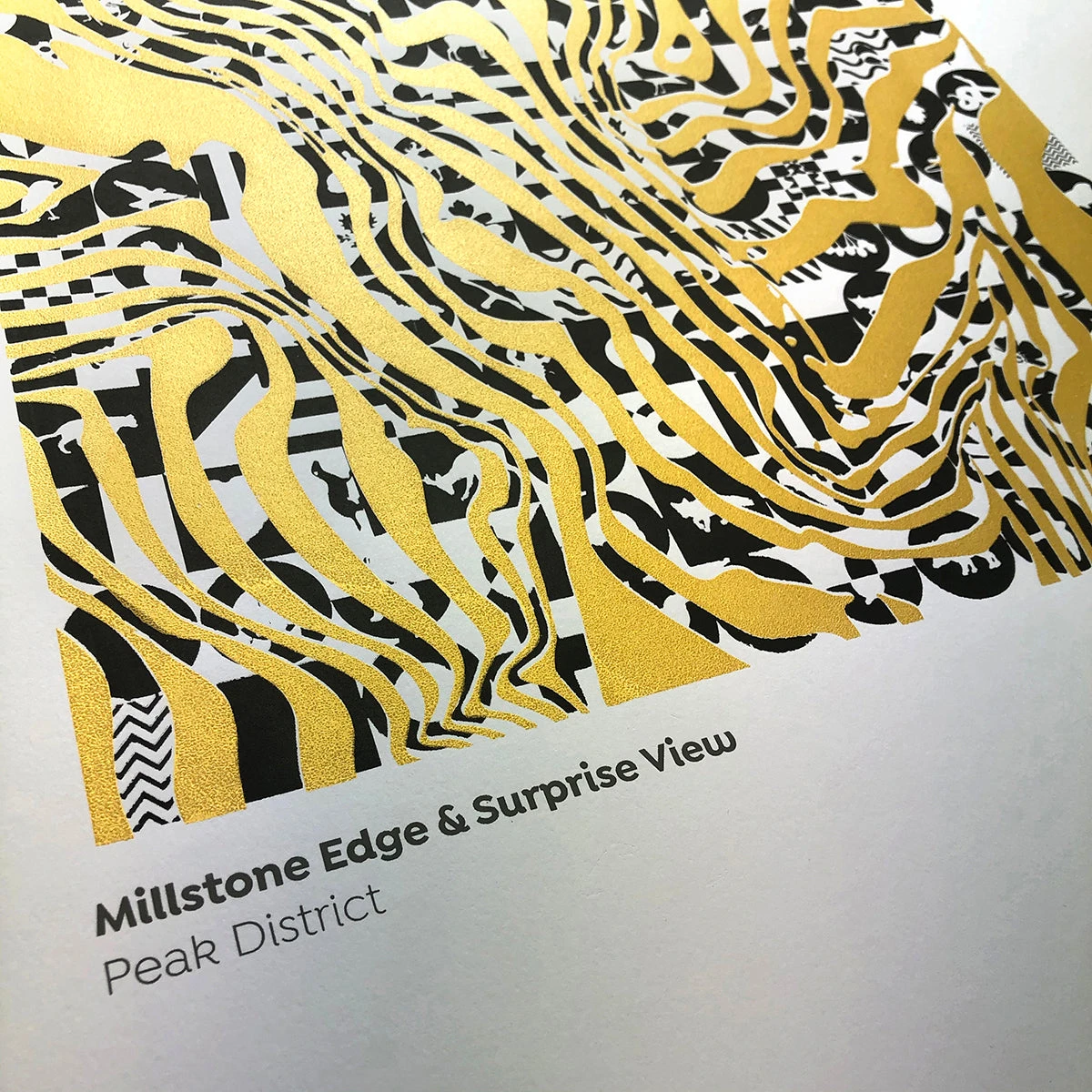 The work shows the contours between Millstone Edge and Lawrencefield as they overlook Hathersage and down the length of Hope Valley in Derbyshire.