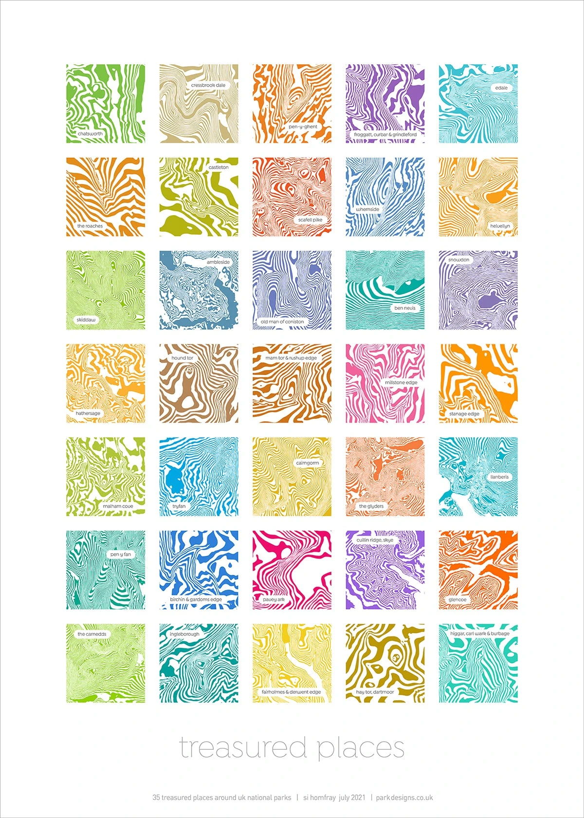 Title: Park Designs – 35 Treasured places around the UK’s national parks Contour Print on white