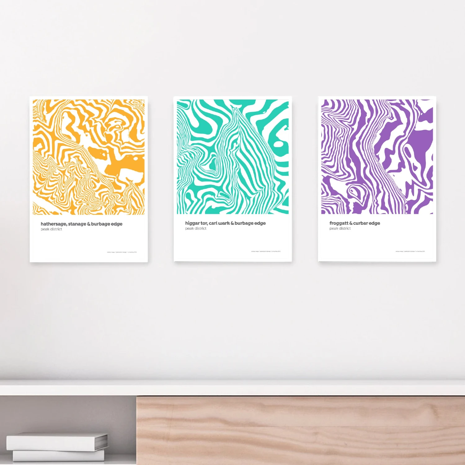 Peak District 01 – Set of 3 – A3 Contour Range Prints