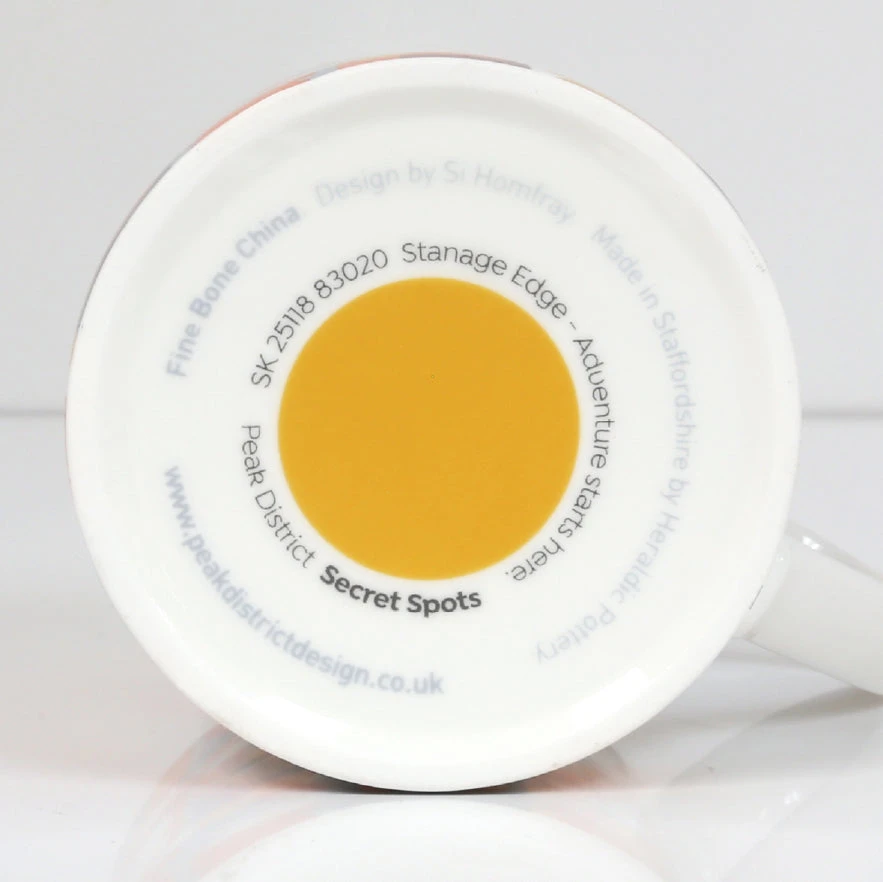 Description: The Secret Spots Stanage Edge pattern is a six colour print design applied to the highest quality Stoke on Trent, Staffordshire Fine Bone China.
