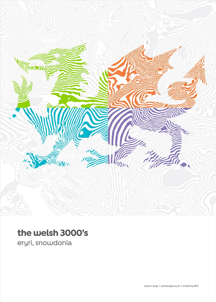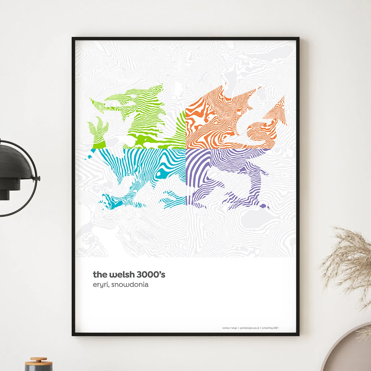 Title: Welsh 3000’s – Eryri Draig Lliw Print Cyfuchlin – Coloured Dragon Contours