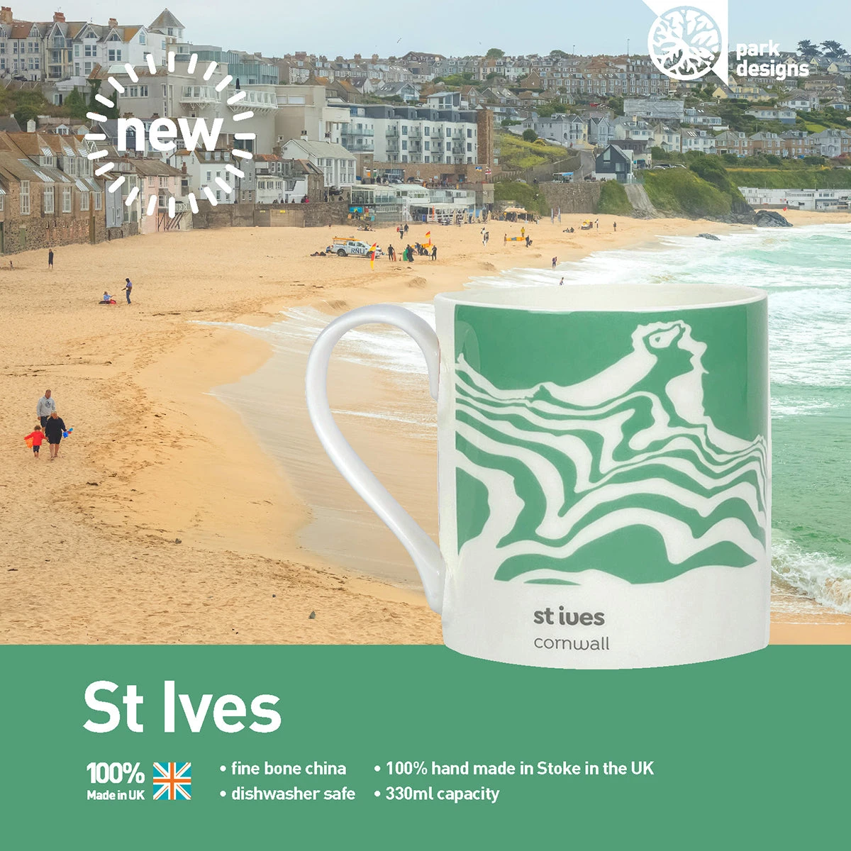A Fine Art Ceramic Mug featuring the St Ives Contour Design in a mint fresh green.