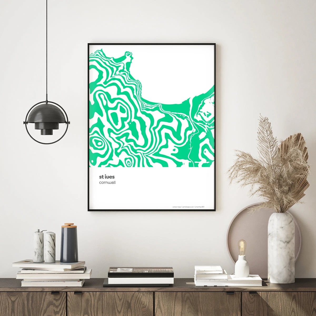 A Fine Art Print featuring the St Ives Design in a striking fresh green.