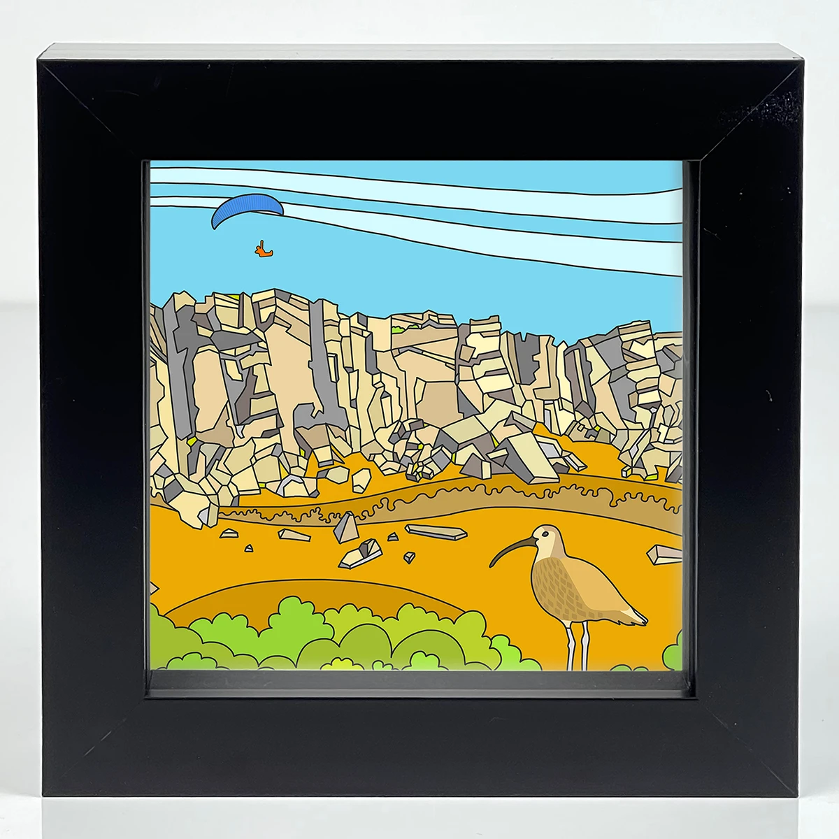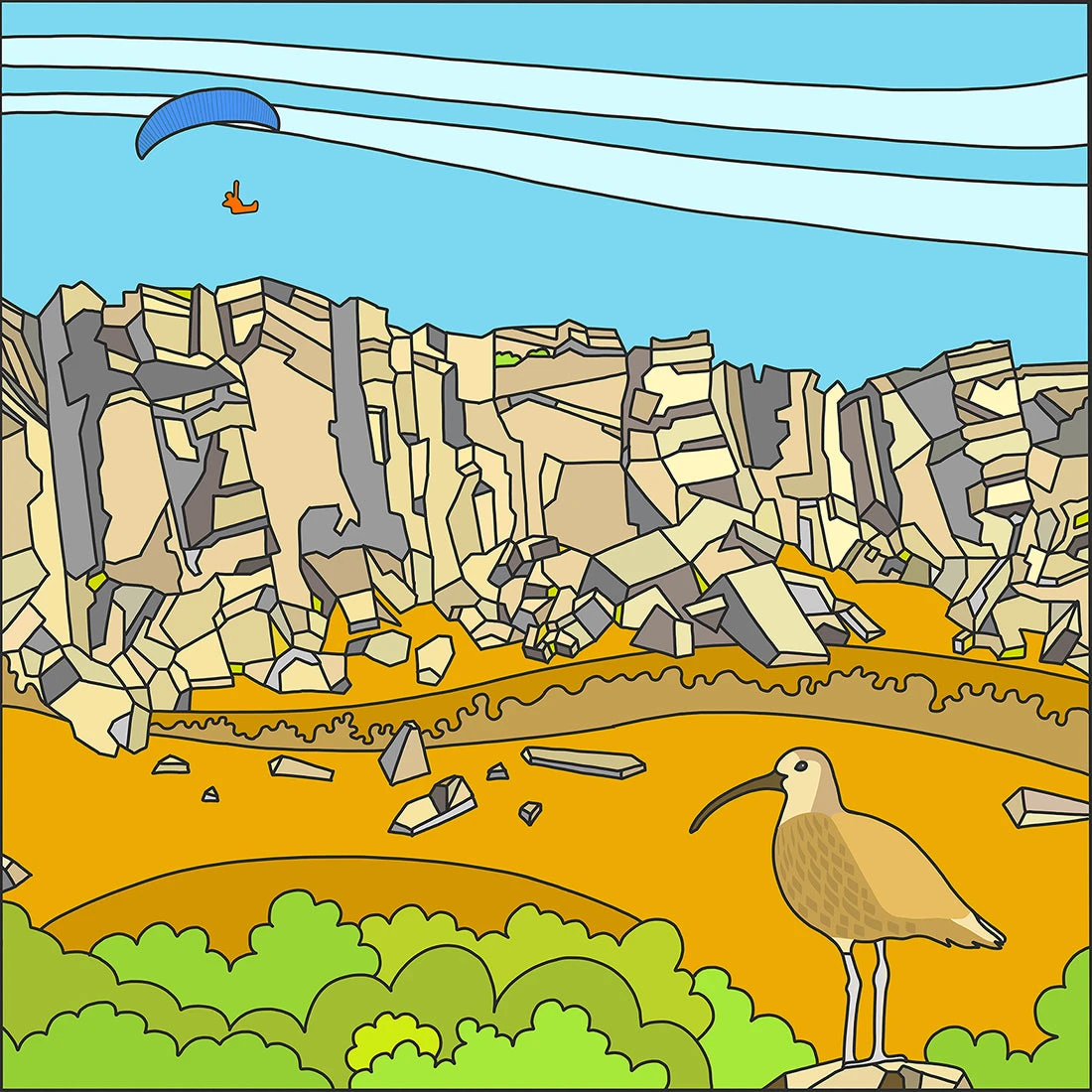 This third work illustrates paragliding and a Curlew, popular in the area.