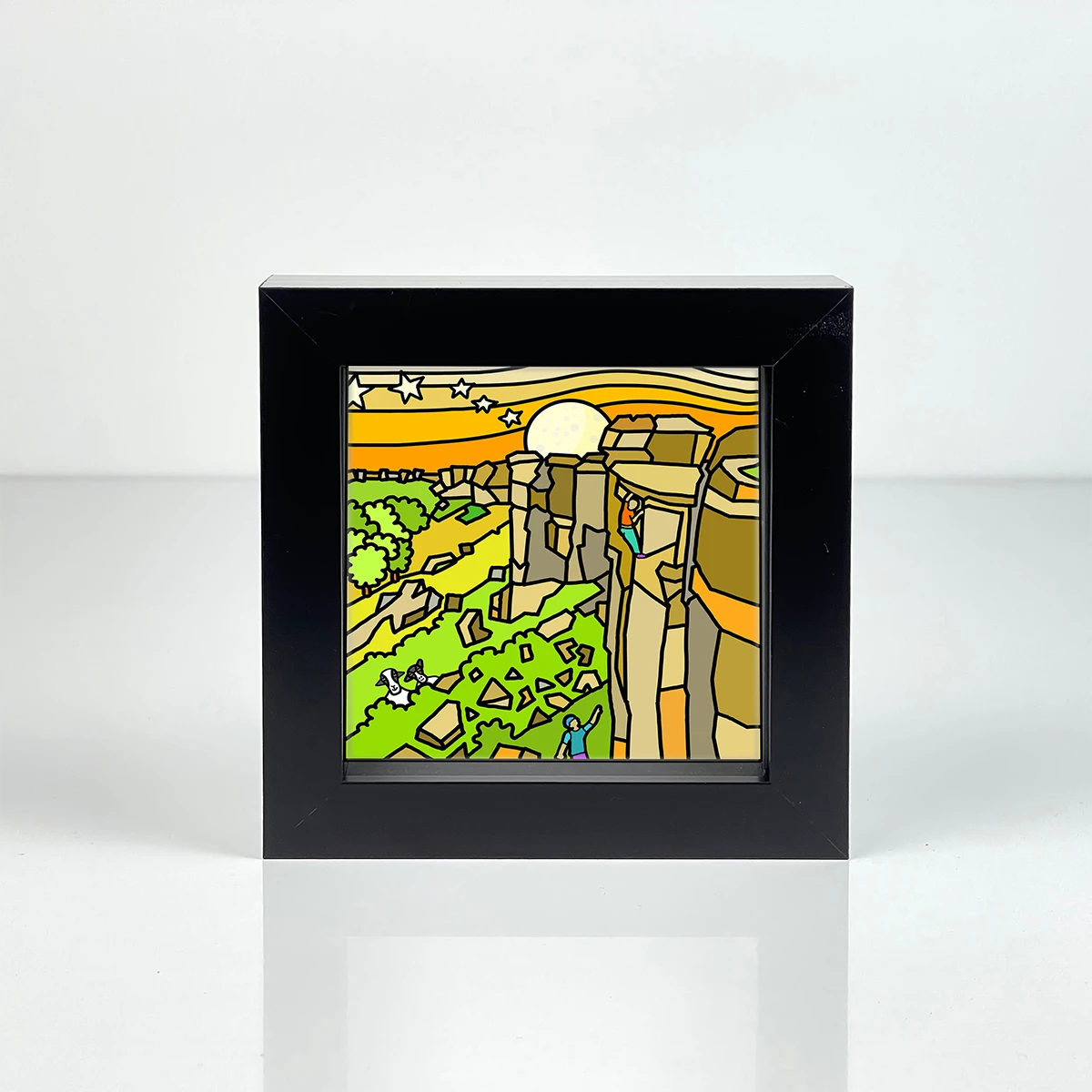 Full colour UV resistant archival inks. Giclée digital print to quality paper.