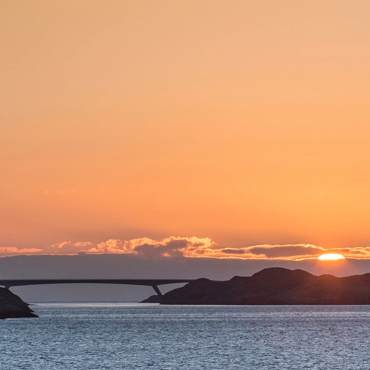 This work in the Scottish Highlands and Islands comprises the islands and surroundings of the Isle of Harris in the Outer Hebrides in Scotland. The work includes the many beautiful small and remote islands, the ferry port of Tarbert, Taranasay and Scalpay with its bridge as shown in the photo.