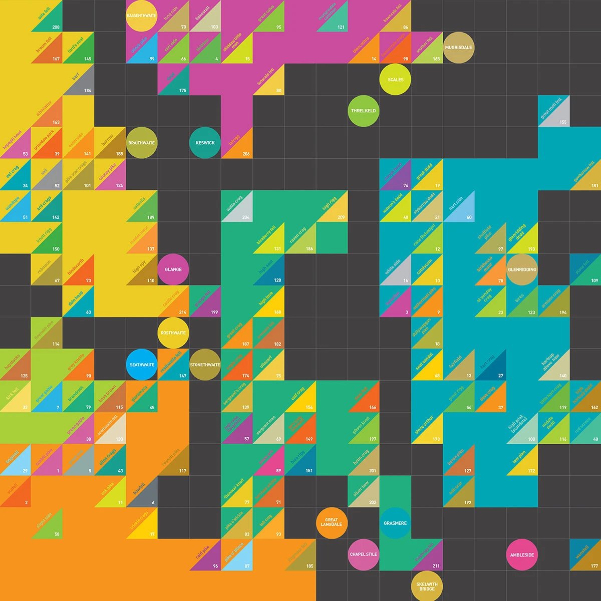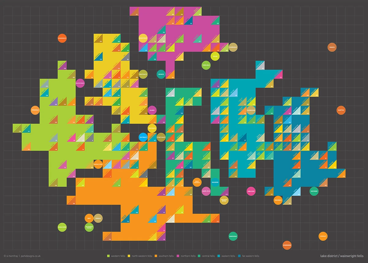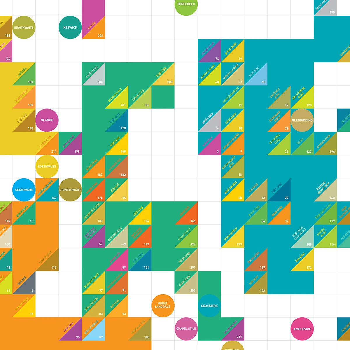 A modern contemporary style of poster art for ticking off those summits. For Wainwright baggers such as fell runners, walkers, climbers and massive Lakes lovers and outdoor enthusiasts like Si.