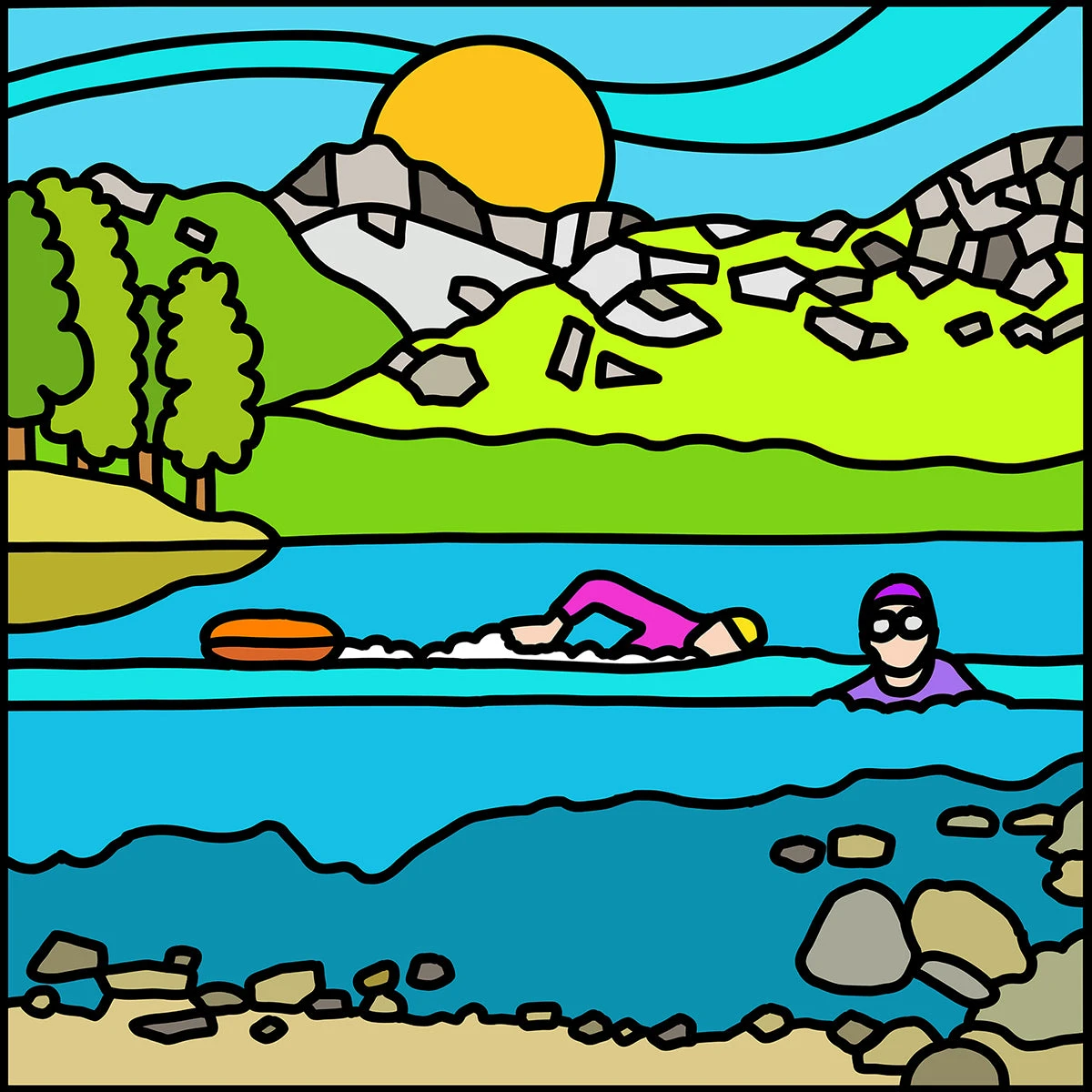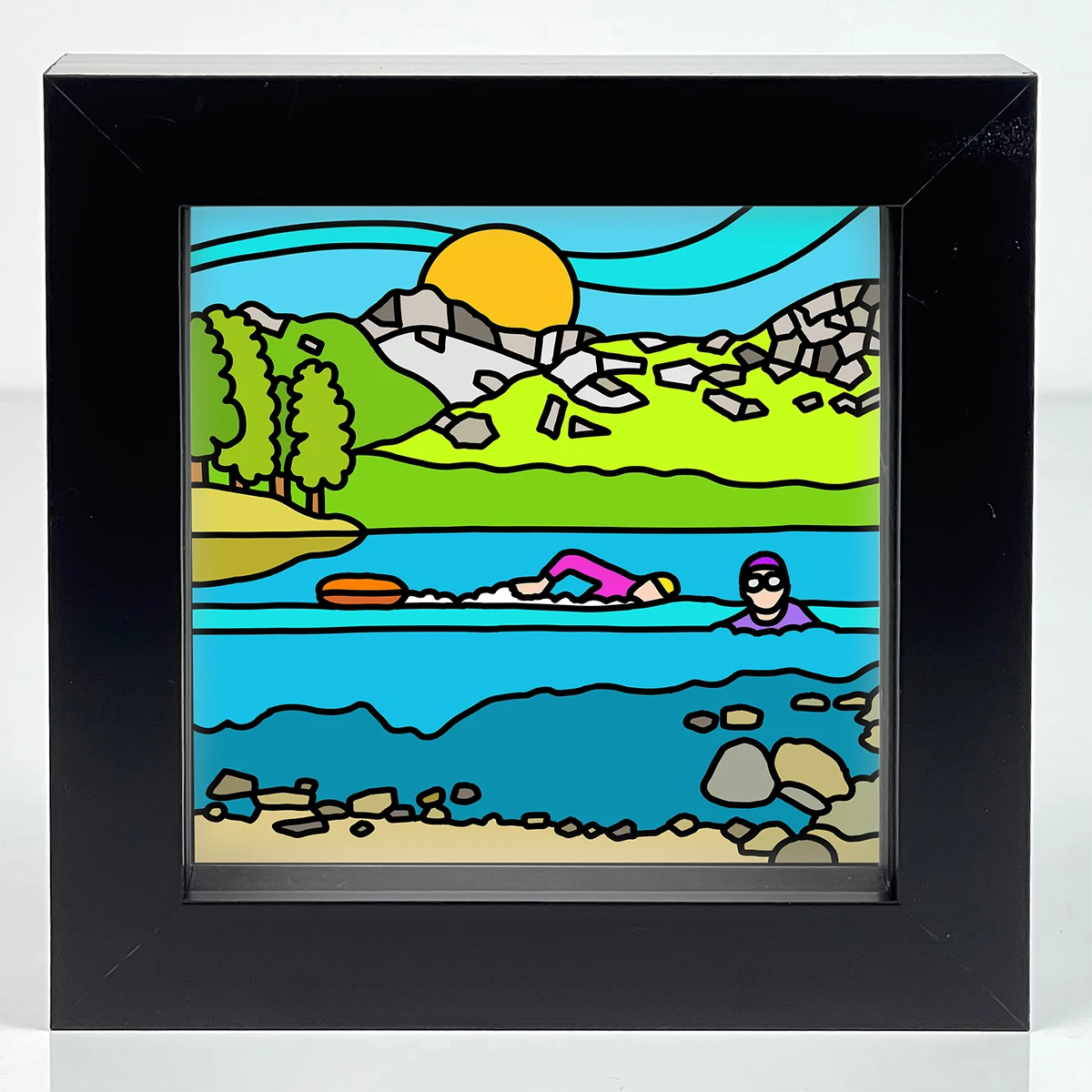 Pictured here are Si’s take on a couple of wild swimmers in the tarn overlooking the Langdale Pikes in the Lake District. A brightly coloured float, some serious happiness and cold water endorphins are the principle feature of this idyllic scene. #lovingit